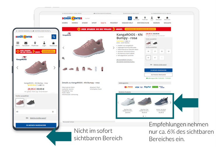 A total of 170,000 sessions were tested on the schuhcenter.de site within one week. The only difference between the test groups was the product recommendation on the product detail page.